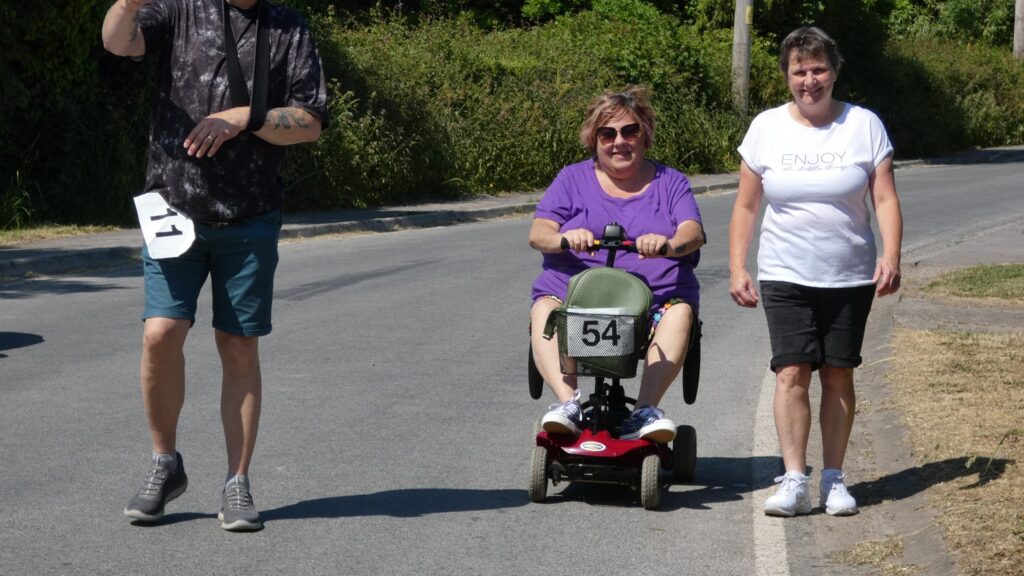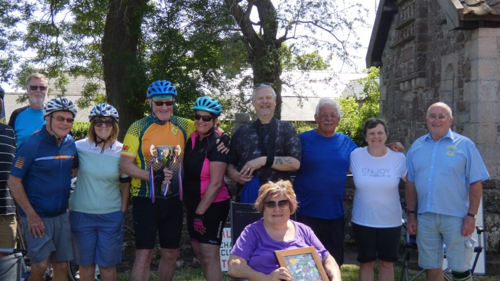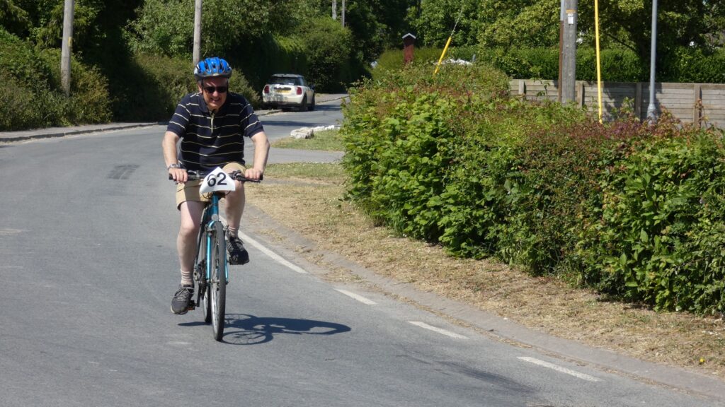 This year, on a glorious sunny day 4th June over 20 took part; not only cyclists but walkers, electric bikes and motorised chairs. Walkers included Musical directors Sian Hatton and Shirley Anne James who each completed two circuits. Although the record stands at over 50 laps, this year guest riders Brian Stephens completed 40 and Phil Bates completed 37.