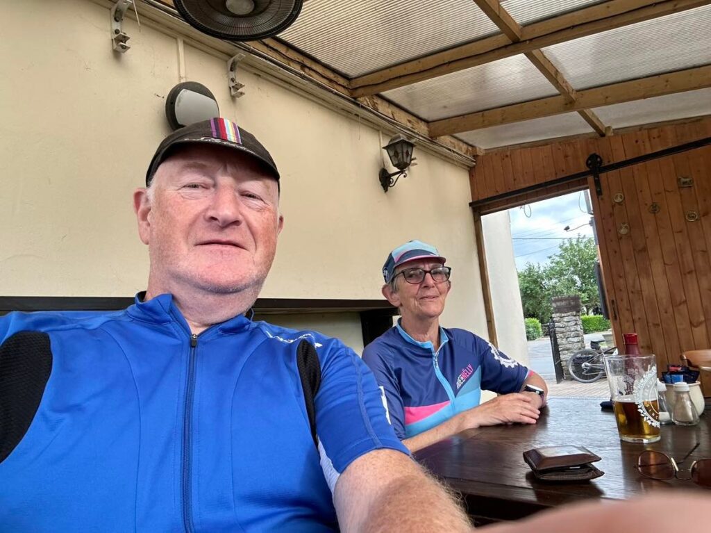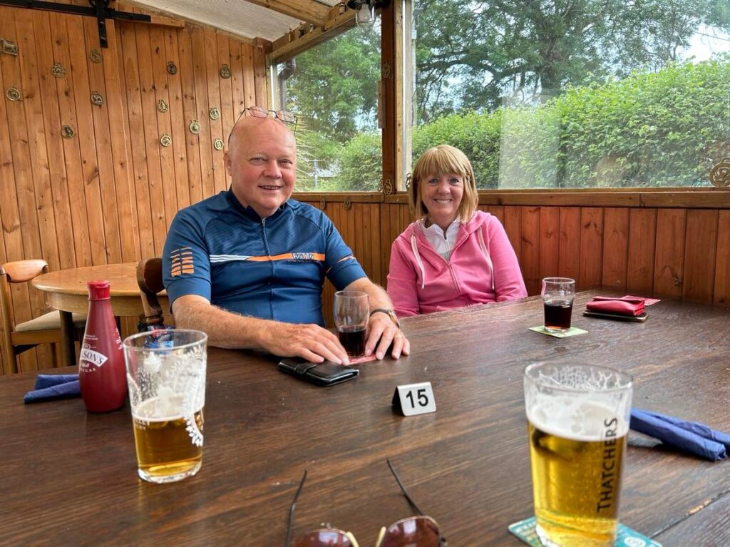A nice evening ride to the Rose Inn for food and beverages. Six cyclists left the Choir Hall were joined by friends at the Rose.