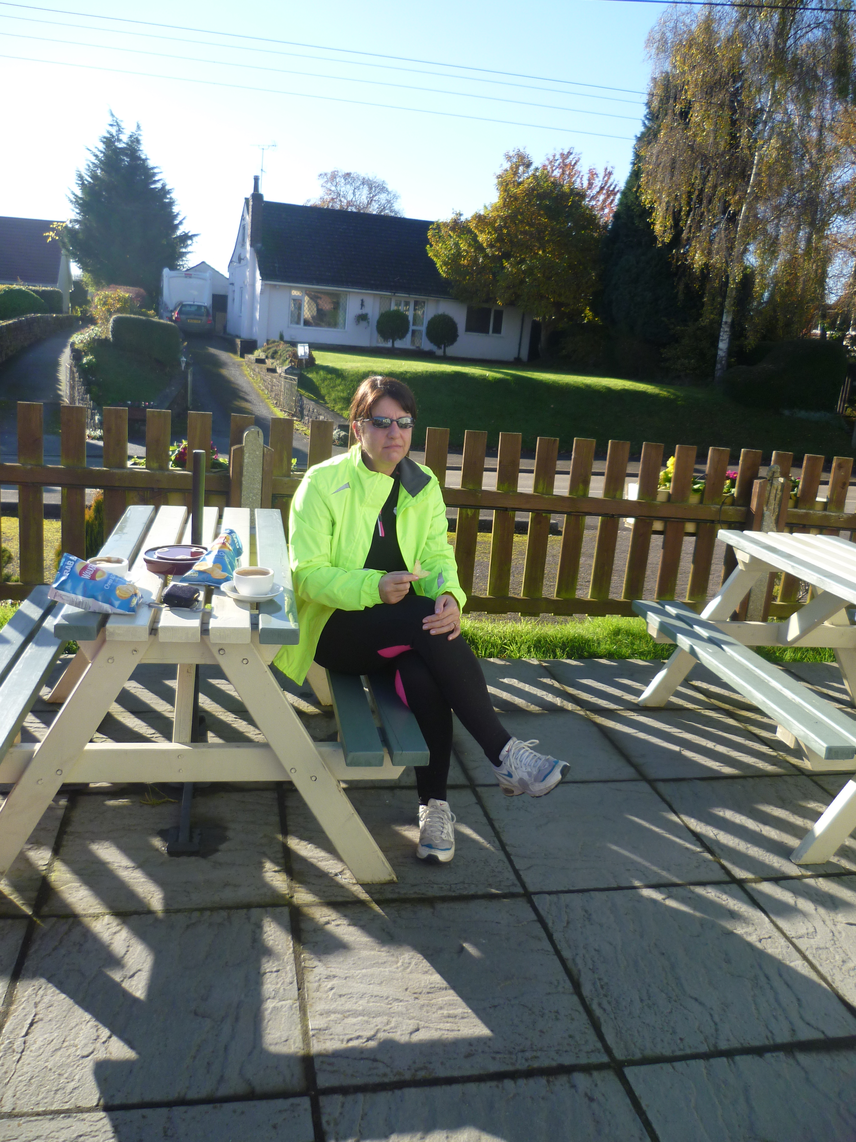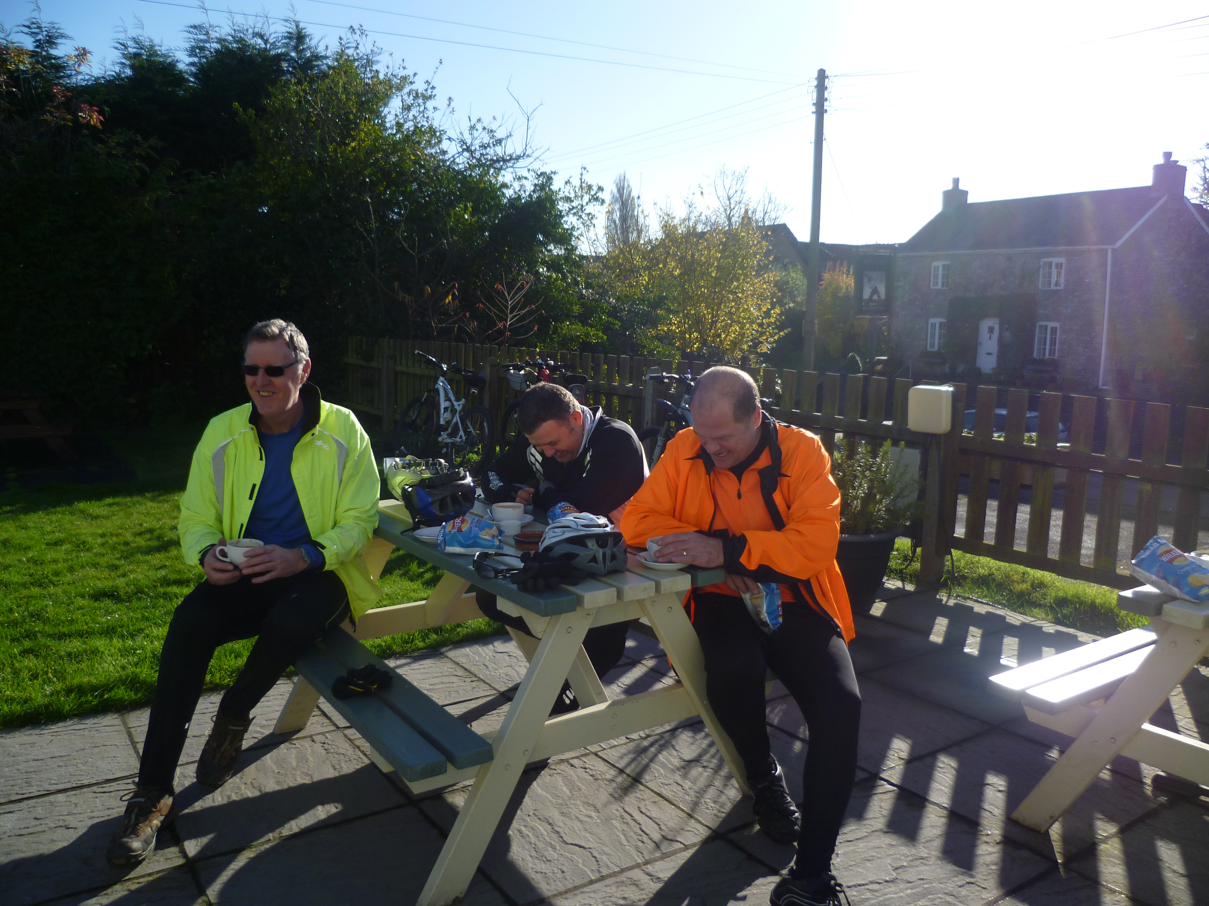 Coffee and crisps was the order of the day sat in the pub garden in the sunshine, before meandering through Mathern and back on the A48 to climb up to Parkwall. The last leg of the journey was via Leechpool and Black Rock before going through Sudbrook and back home.