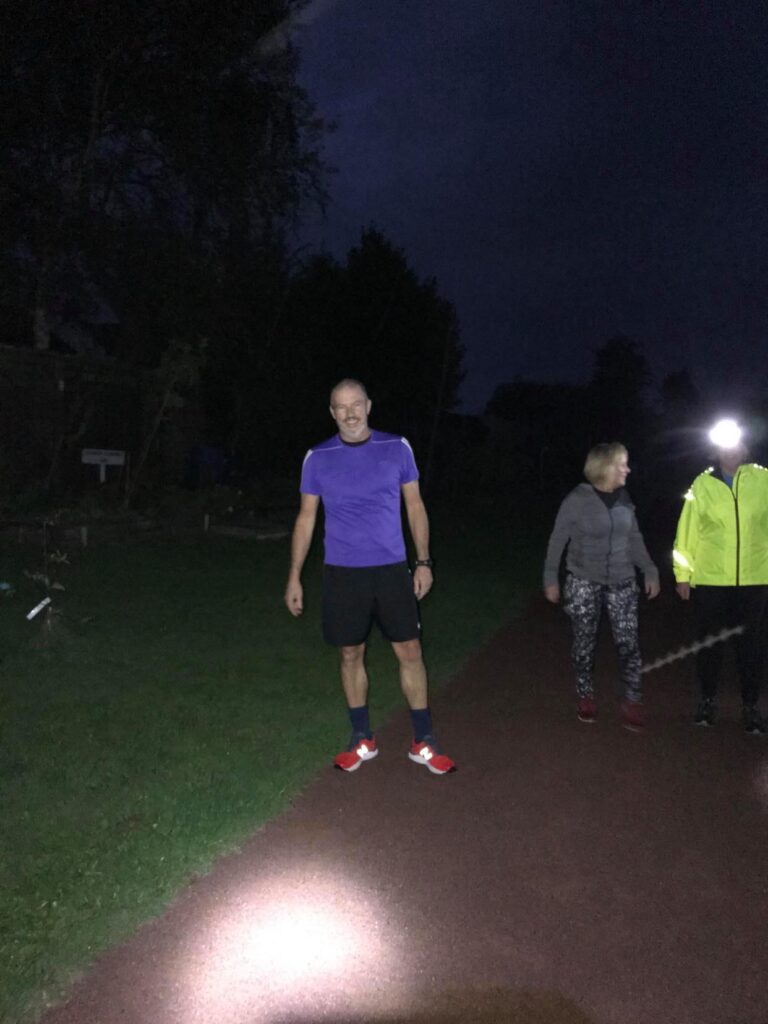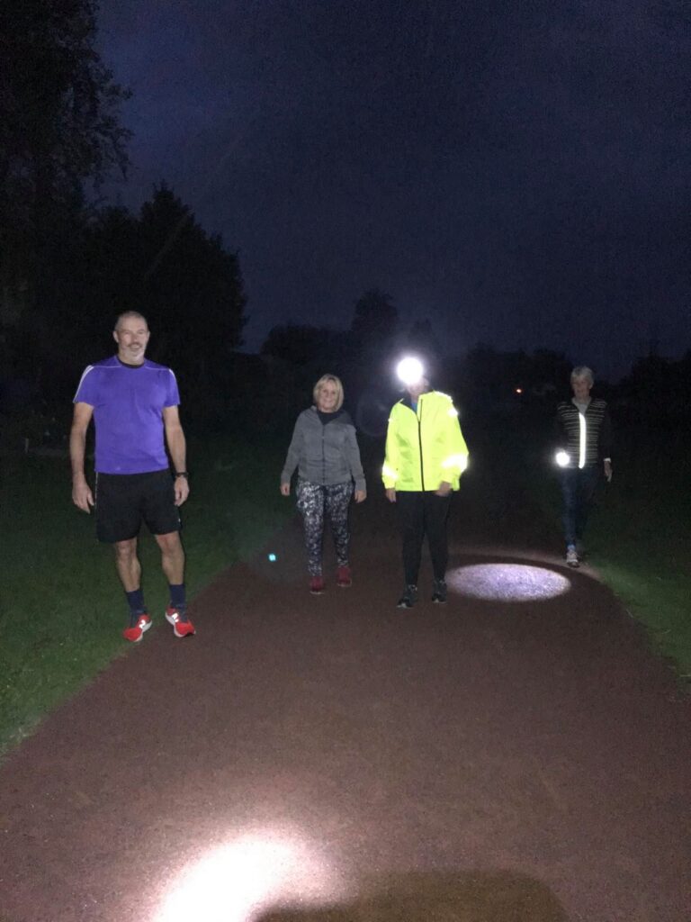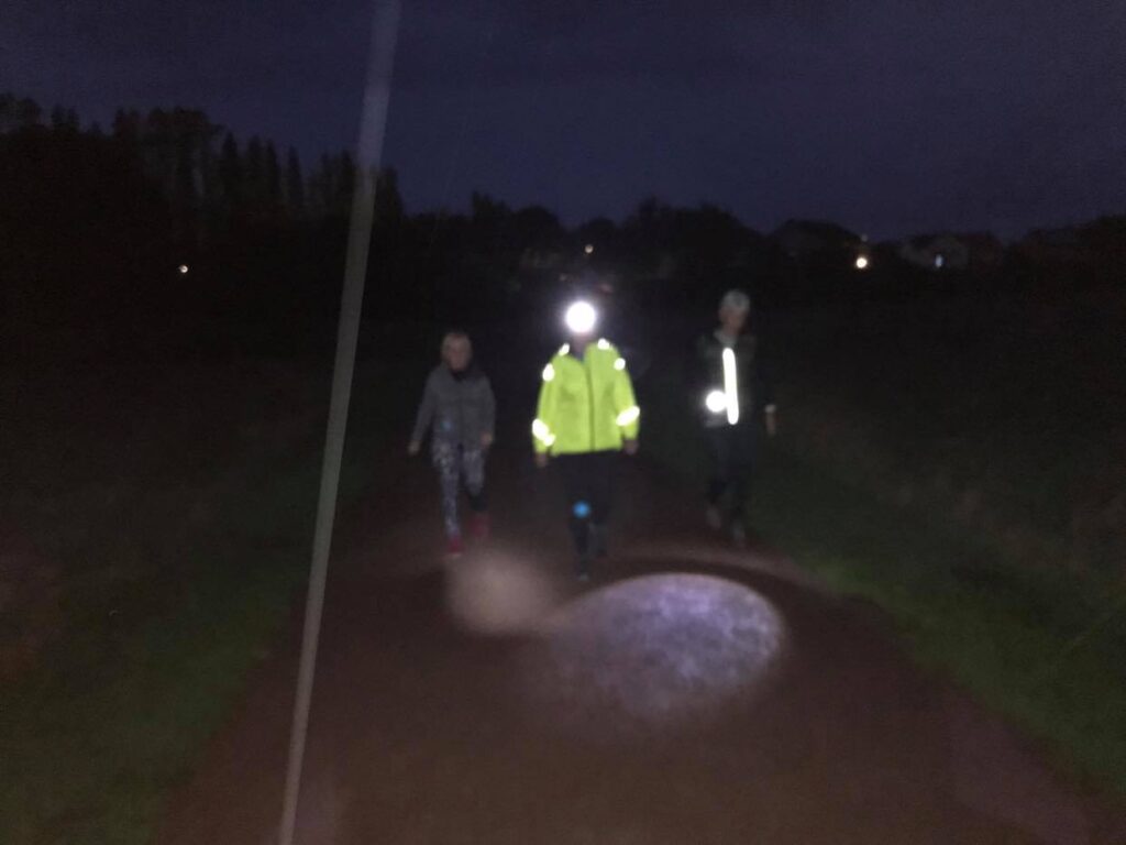 Five runners made it to the start at the Cornfield, now starting in the dark. With the aid of head torches, we managed to complete half of the planned 5K (3 laps), before the heavens opened with heavy rain which led to its abandonment.